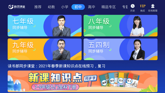 涵盖了所有年级和科目:一年级到九年级的语文、数学、英语、物理、化学、生物、政治、地理、历史、科学等上下册。VIP会员可优先享受所有科目和名师课程。
